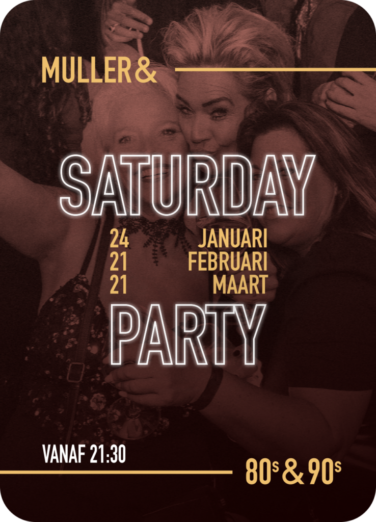 Ben jij klaar voor een flinke dosis nostalgie? Bij Muller&Co gaan we terug naar de tijd van cassettebandjes, boybands, neon vibes en onvergetelijke classics. Tijdens onze 80’s & 90’s Saturday Party nemen we je elke maand mee terug in de tijd!